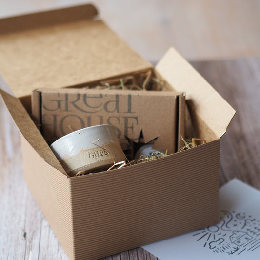 We house each luxurious scented candle gift set in a kraft brown gift box, nestling everything with care into hay from our little Welsh farm. Every part of the Great House Farm Stores gift experience feels luxurious, beautiful and precious.
