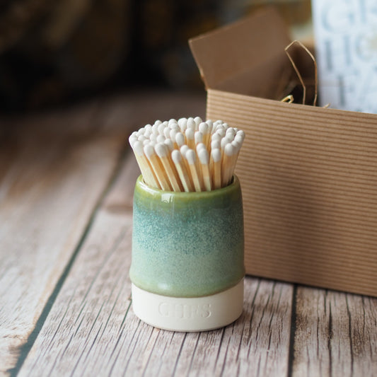 Ceramic Match Pot - Navy Blue with Gold Splatter