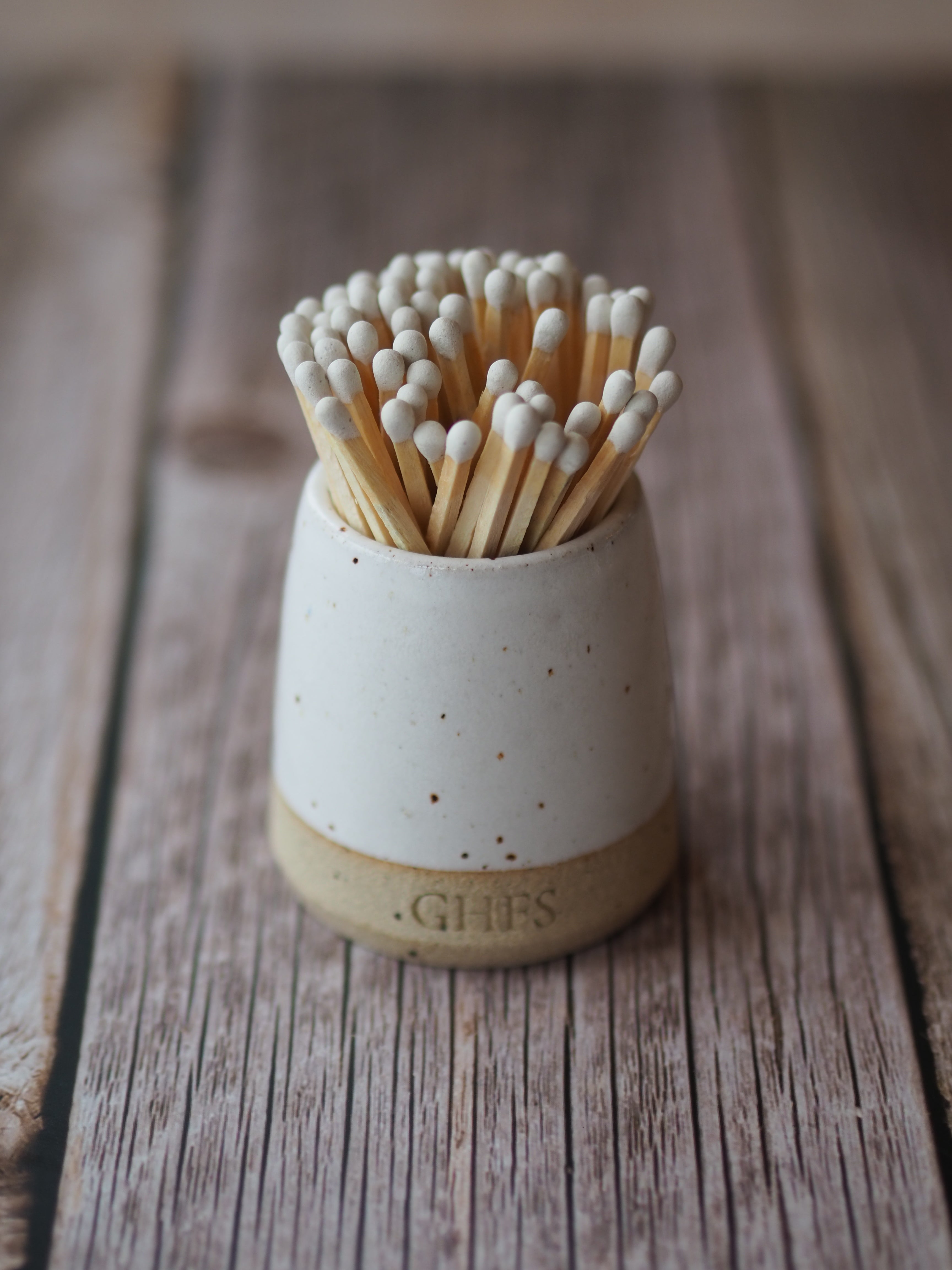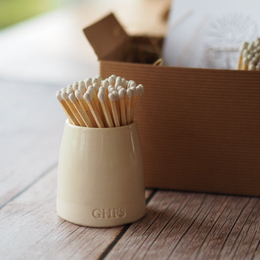 For the perfect gift, pair one of our ceramic match pots with two bundles of our off-white matches in a gorgeous gift box.