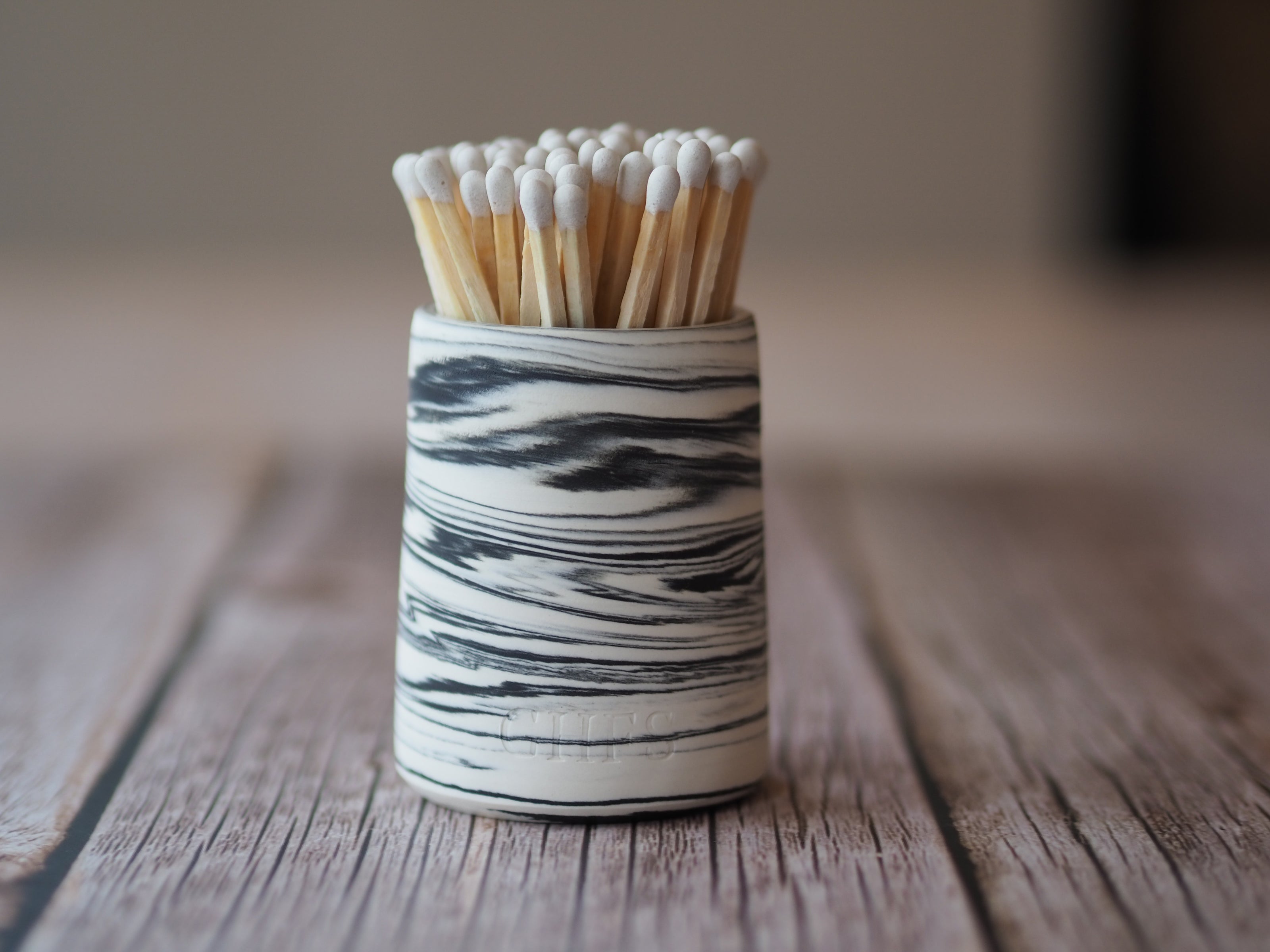 Ceramic Match Pot - Marbled Black & White