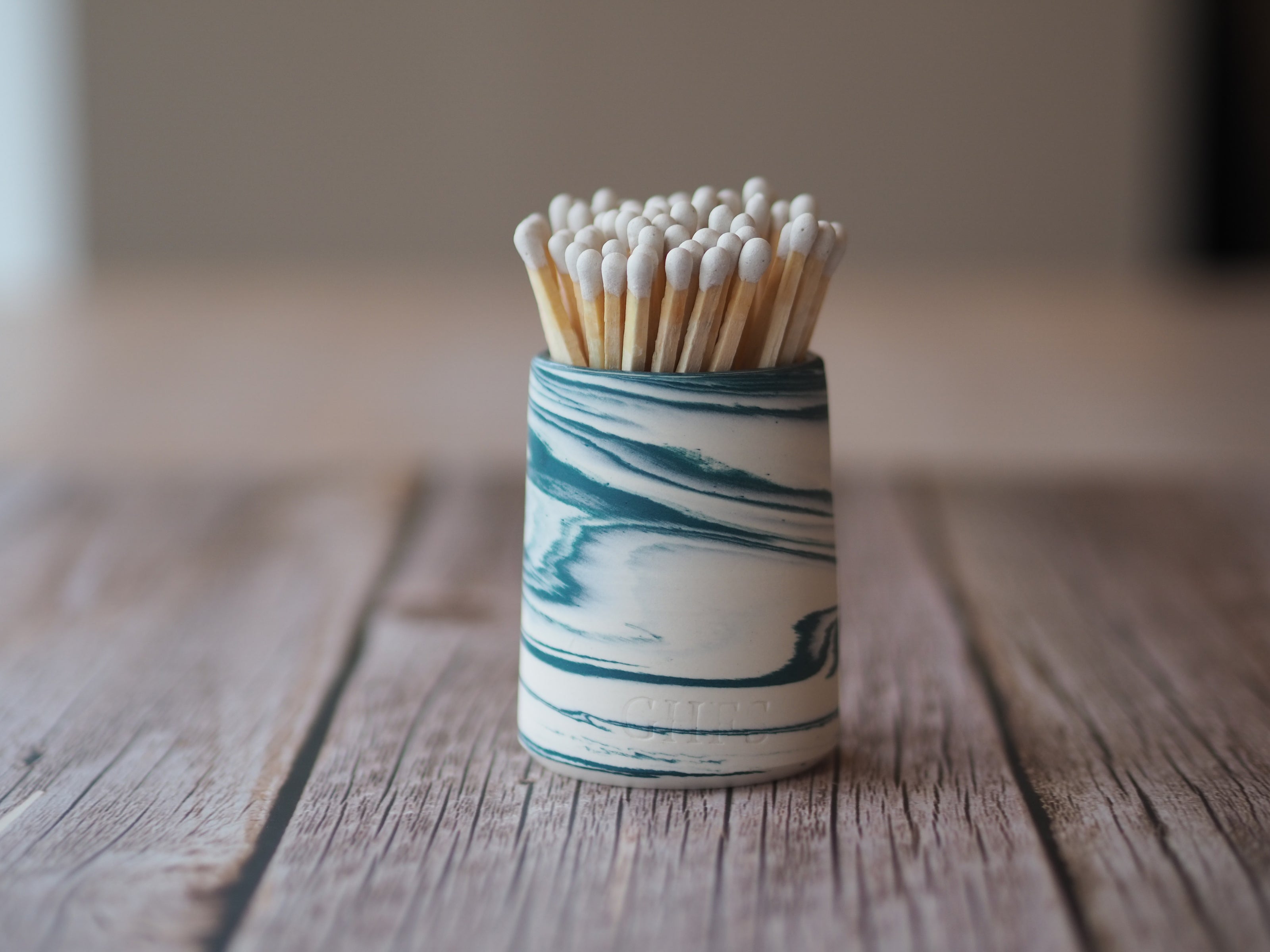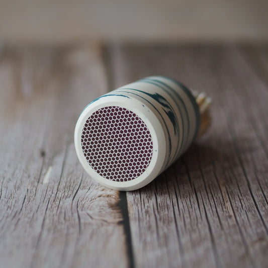 Ceramic Match Pot - Marbled Teal & White