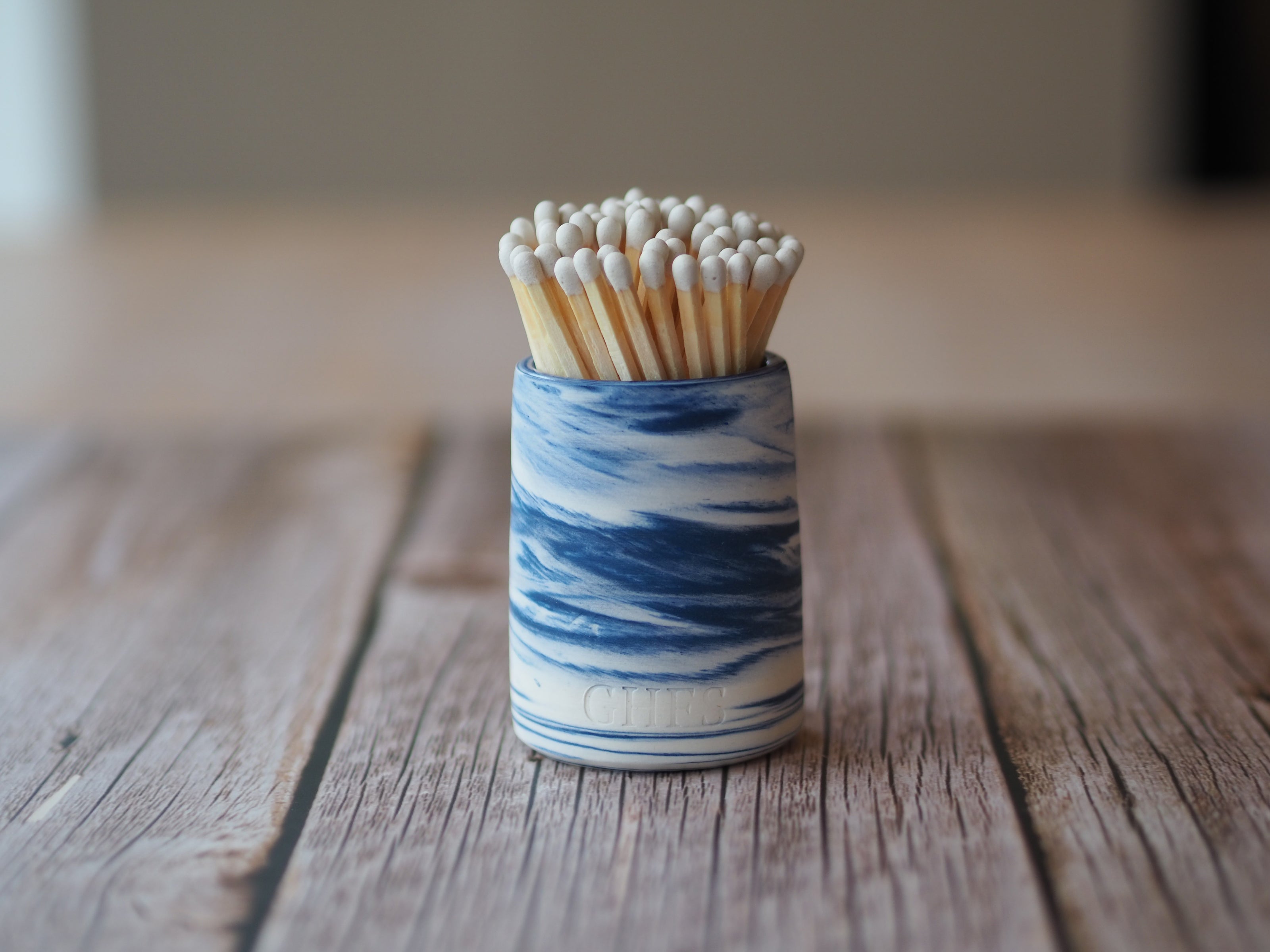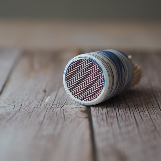 Ceramic Match Pot - Marbled Blue & White